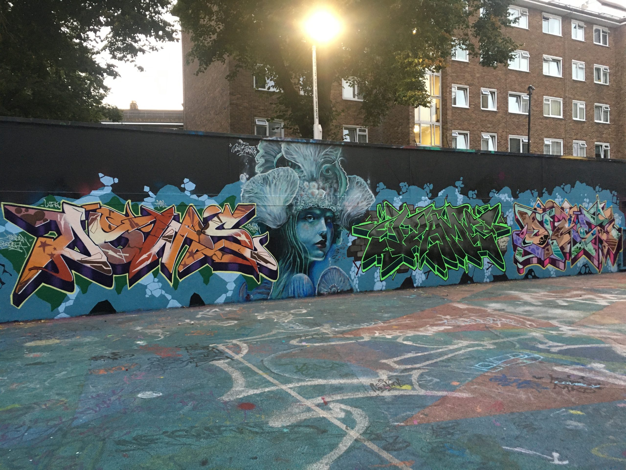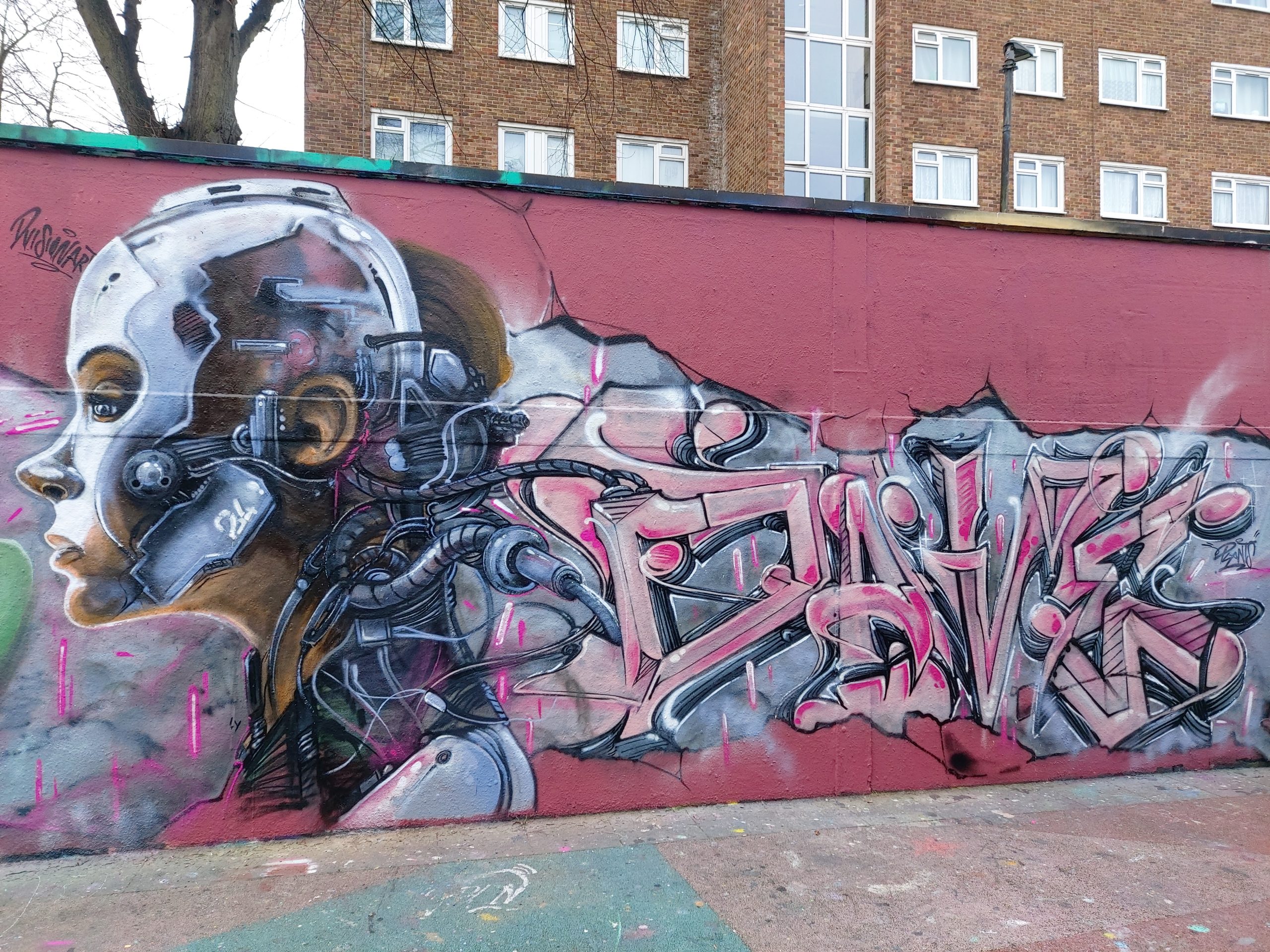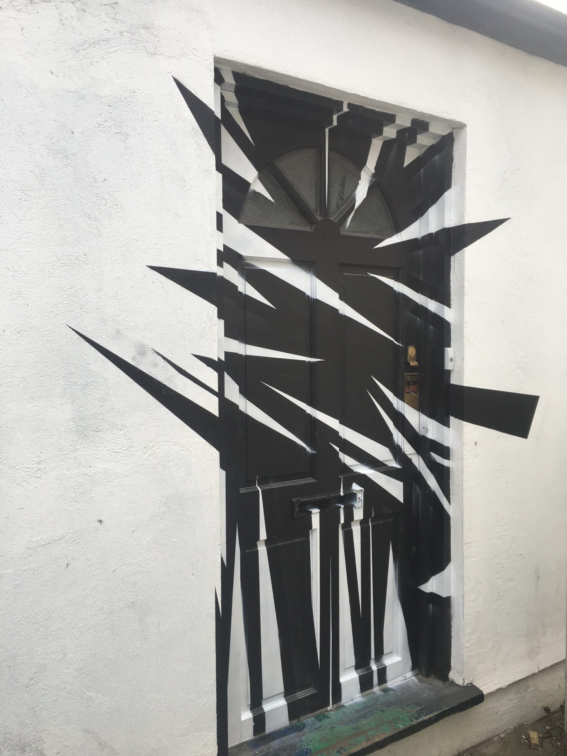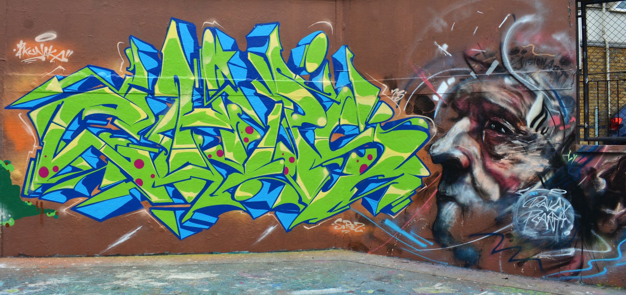 La nostra missione è soddisfare i nostri clienti creando, con loro, una sintonia. Qwerky è uno dei nostri partner più vecchi e Faisal, il proprietario, ripone in noi tanta fiducia da mantenere una relazione lavorativa costante con progetti sempre freschi e nuovi. Era proprio in cerca di qualche nuova ispirazione a Forrest Gate e noi abbiamo creato l'ambiente cominciando con un'incredibile giraffa che beve un caffé all'aperto e poi, step by step, riempiendo l'area con ulteriori artwork ( una mano che afferra da dietro un cancello nero, un polpo tuttofare, una porta astratta). La piovra ricorda un uomo indaffarato a riparare diverse situazioni con altrettanti diversi oggetti. La giraffa, invece, rappresenta il nostro sogno perduto nel cielo e il caffé che sta bevendo è un richiamo al business che insegue. La mano è stata un'opportunità unica e libera di usare lo spazio nel cortile al fine di attirare persone e rendere l'area un po' più apprezzabile per i residenti. Nel frattempo, Faisal ha aperto un altro Qwerky, questa volta a Shedwell, chiedendoci di installare una luce al neon che insieme a diversi effetti spray avrebbe dovuto abbellire il loro logo e ci ha invece lasciato carta bianca a Walthamston dove, per il suo primo negozio, abbiamo creato artwork unici che sembrano staccarsi dalla parete e prendere vita e, con il ragazza afro, abbiamo rappresentato la città in cui viviamo, Londra, riflessa nei suoi occhiali gialli.