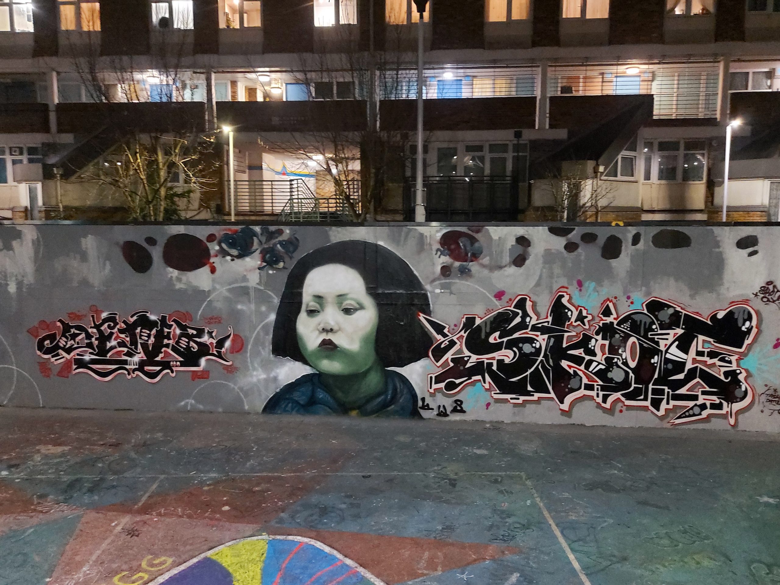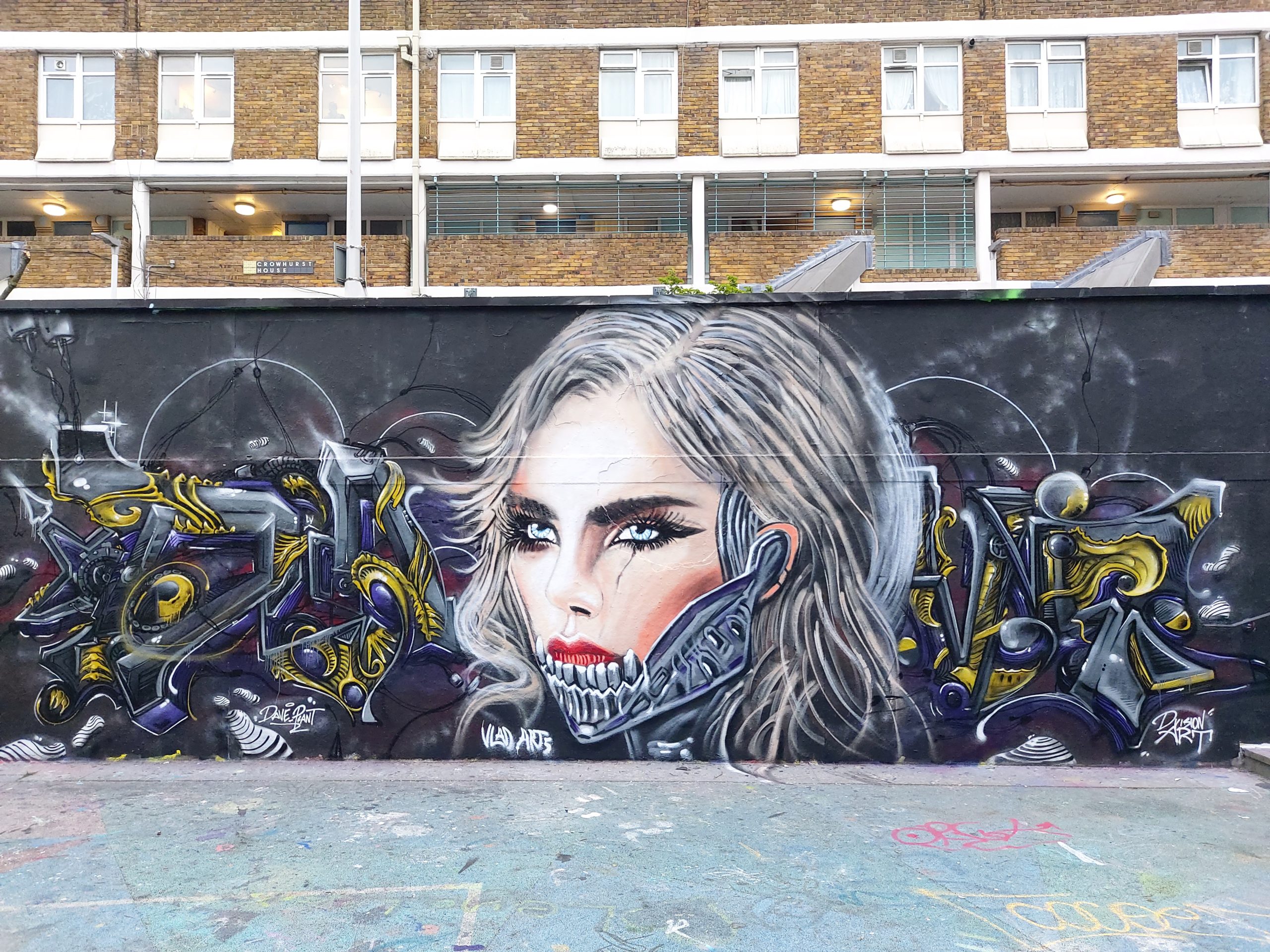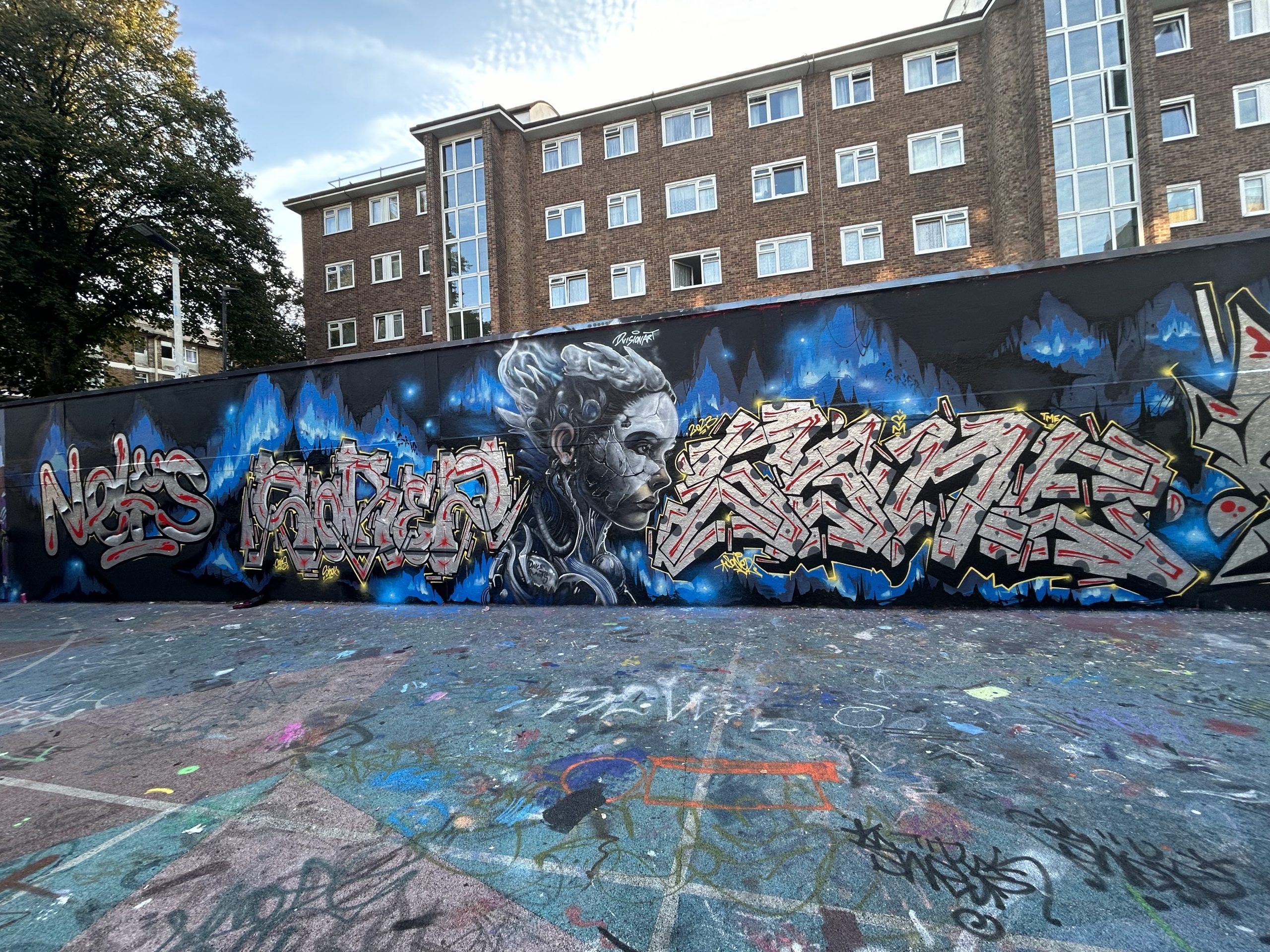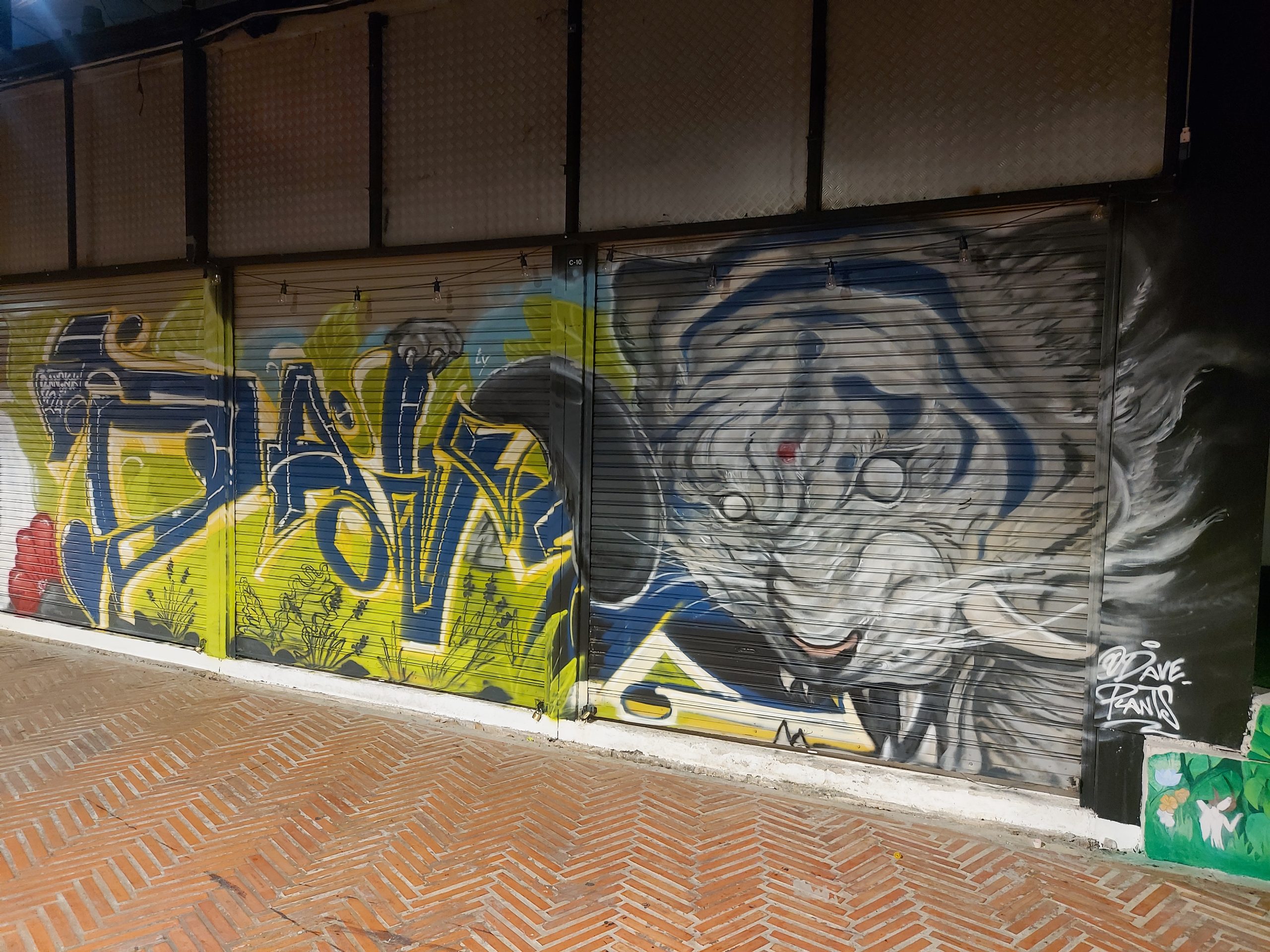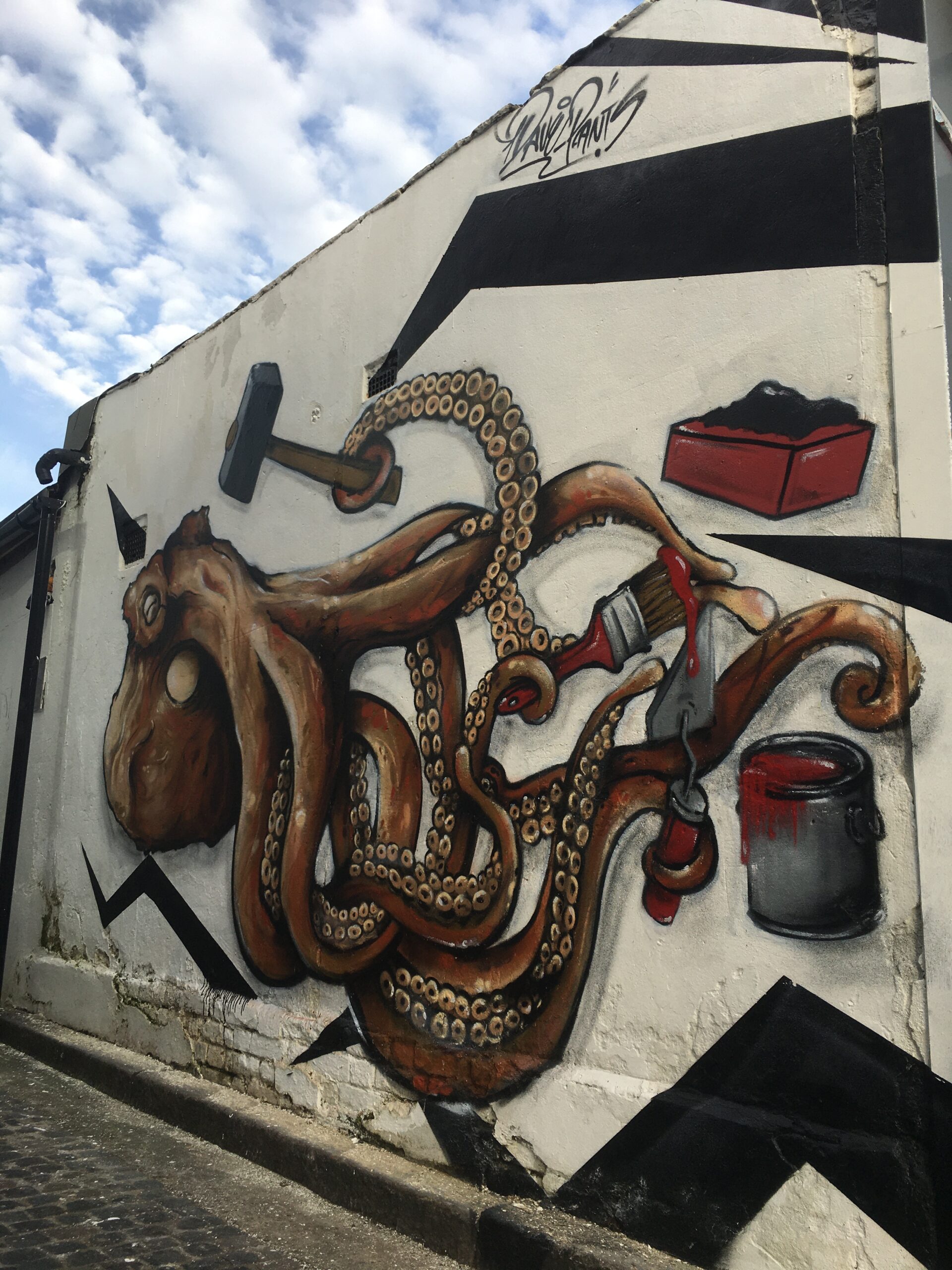 La nostra missione è soddisfare i nostri clienti creando, con loro, una sintonia. Qwerky è uno dei nostri partner più vecchi e Faisal, il proprietario, ripone in noi tanta fiducia da mantenere una relazione lavorativa costante con progetti sempre freschi e nuovi. Era proprio in cerca di qualche nuova ispirazione a Forrest Gate e noi abbiamo creato l'ambiente cominciando con un'incredibile giraffa che beve un caffé all'aperto e poi, step by step, riempiendo l'area con ulteriori artwork ( una mano che afferra da dietro un cancello nero, un polpo tuttofare, una porta astratta). La piovra ricorda un uomo indaffarato a riparare diverse situazioni con altrettanti diversi oggetti. La giraffa, invece, rappresenta il nostro sogno perduto nel cielo e il caffé che sta bevendo è un richiamo al business che insegue. La mano è stata un'opportunità unica e libera di usare lo spazio nel cortile al fine di attirare persone e rendere l'area un po' più apprezzabile per i residenti. Nel frattempo, Faisal ha aperto un altro Qwerky, questa volta a Shedwell, chiedendoci di installare una luce al neon che insieme a diversi effetti spray avrebbe dovuto abbellire il loro logo e ci ha invece lasciato carta bianca a Walthamston dove, per il suo primo negozio, abbiamo creato artwork unici che sembrano staccarsi dalla parete e prendere vita e, con il ragazza afro, abbiamo rappresentato la città in cui viviamo, Londra, riflessa nei suoi occhiali gialli.