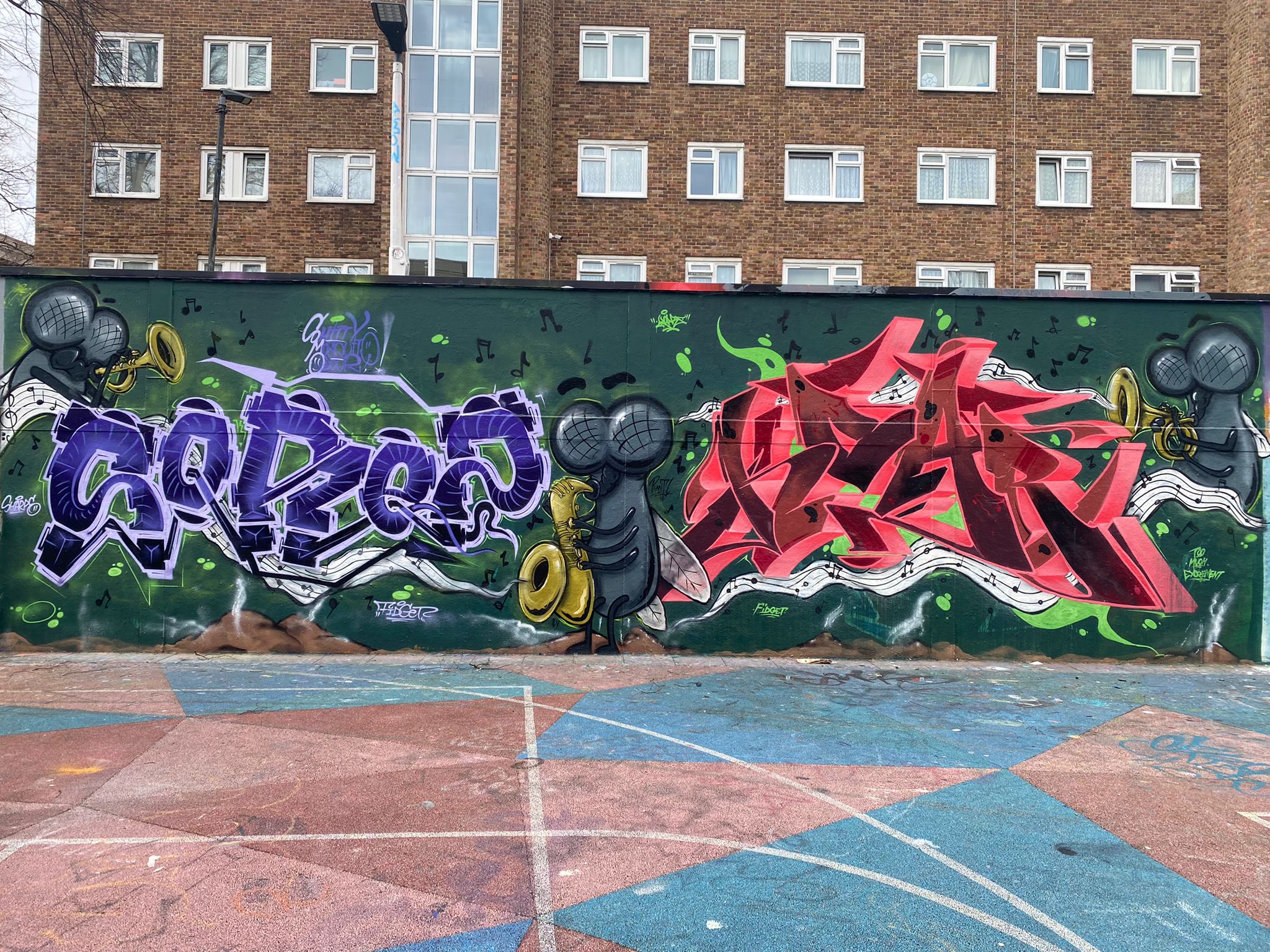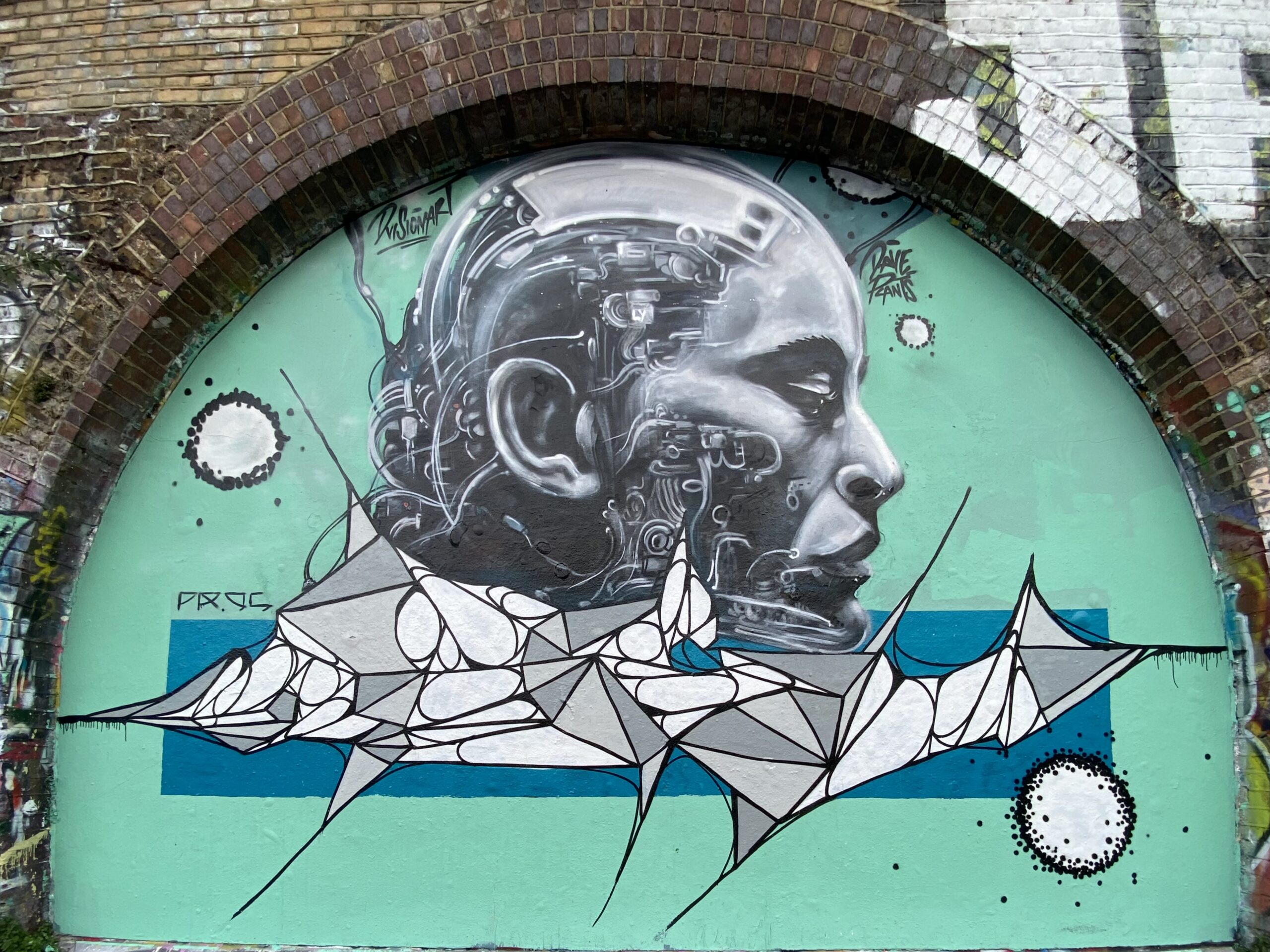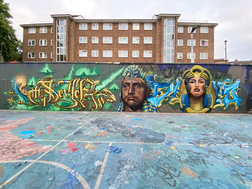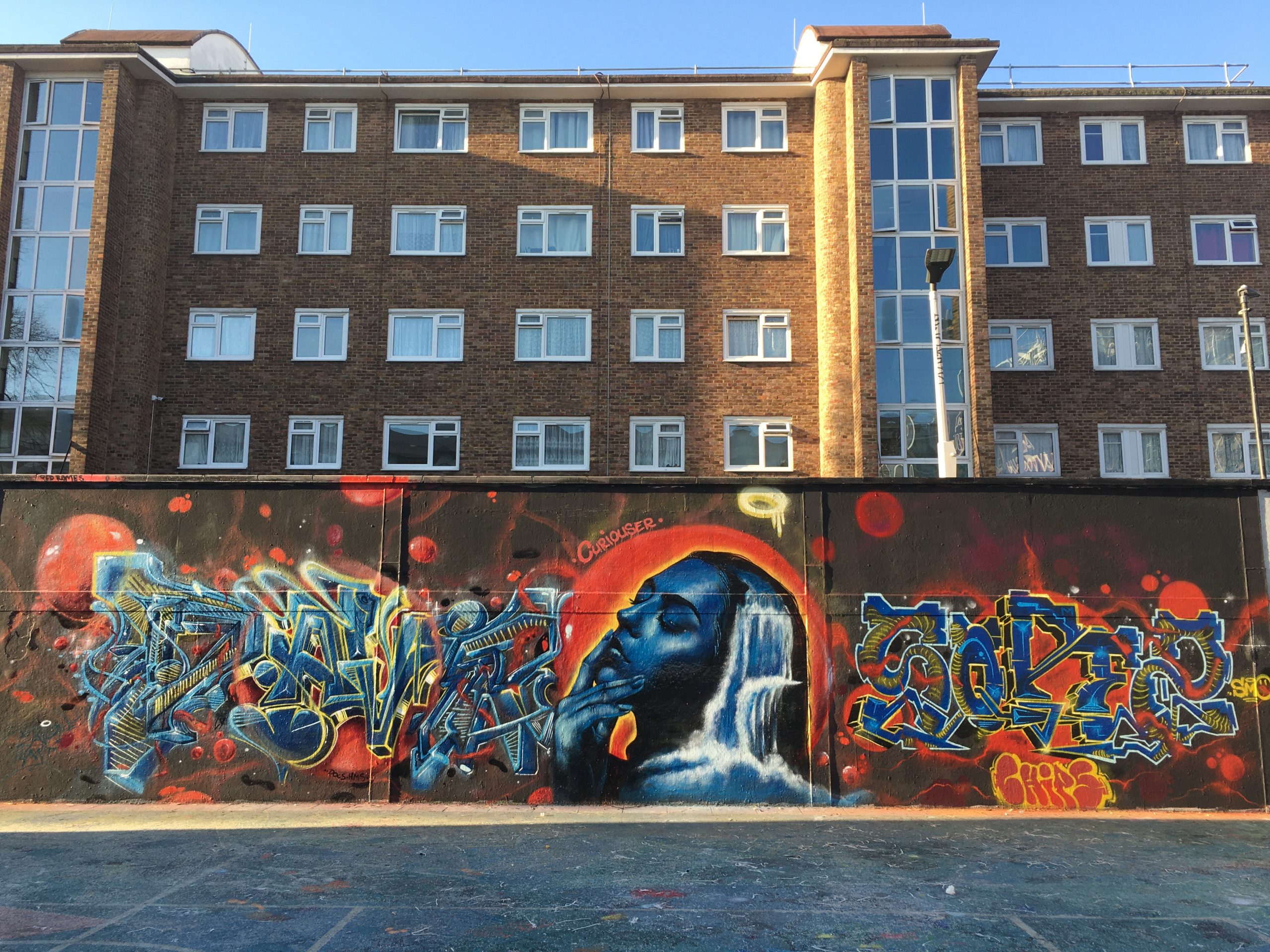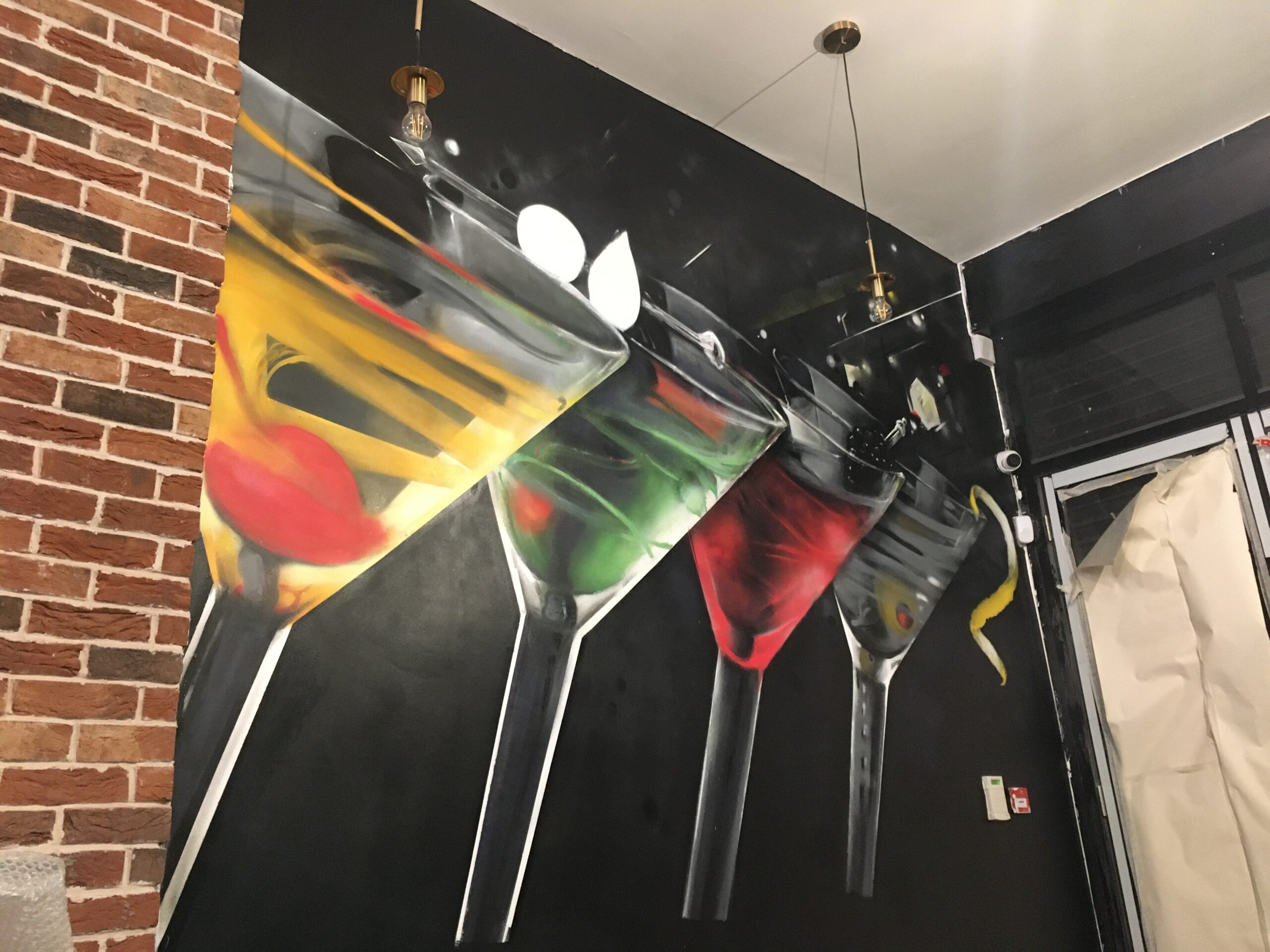 La nostra missione è soddisfare i nostri clienti creando, con loro, una sintonia. Qwerky è uno dei nostri partner più vecchi e Faisal, il proprietario, ripone in noi tanta fiducia da mantenere una relazione lavorativa costante con progetti sempre freschi e nuovi. Era proprio in cerca di qualche nuova ispirazione a Forrest Gate e noi abbiamo creato l'ambiente cominciando con un'incredibile giraffa che beve un caffé all'aperto e poi, step by step, riempiendo l'area con ulteriori artwork ( una mano che afferra da dietro un cancello nero, un polpo tuttofare, una porta astratta). La piovra ricorda un uomo indaffarato a riparare diverse situazioni con altrettanti diversi oggetti. La giraffa, invece, rappresenta il nostro sogno perduto nel cielo e il caffé che sta bevendo è un richiamo al business che insegue. La mano è stata un'opportunità unica e libera di usare lo spazio nel cortile al fine di attirare persone e rendere l'area un po' più apprezzabile per i residenti. Nel frattempo, Faisal ha aperto un altro Qwerky, questa volta a Shedwell, chiedendoci di installare una luce al neon che insieme a diversi effetti spray avrebbe dovuto abbellire il loro logo e ci ha invece lasciato carta bianca a Walthamston dove, per il suo primo negozio, abbiamo creato artwork unici che sembrano staccarsi dalla parete e prendere vita e, con il ragazza afro, abbiamo rappresentato la città in cui viviamo, Londra, riflessa nei suoi occhiali gialli.