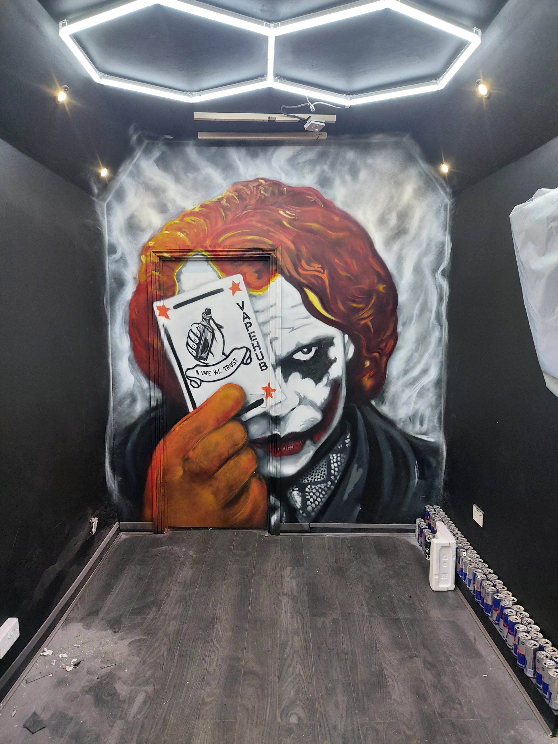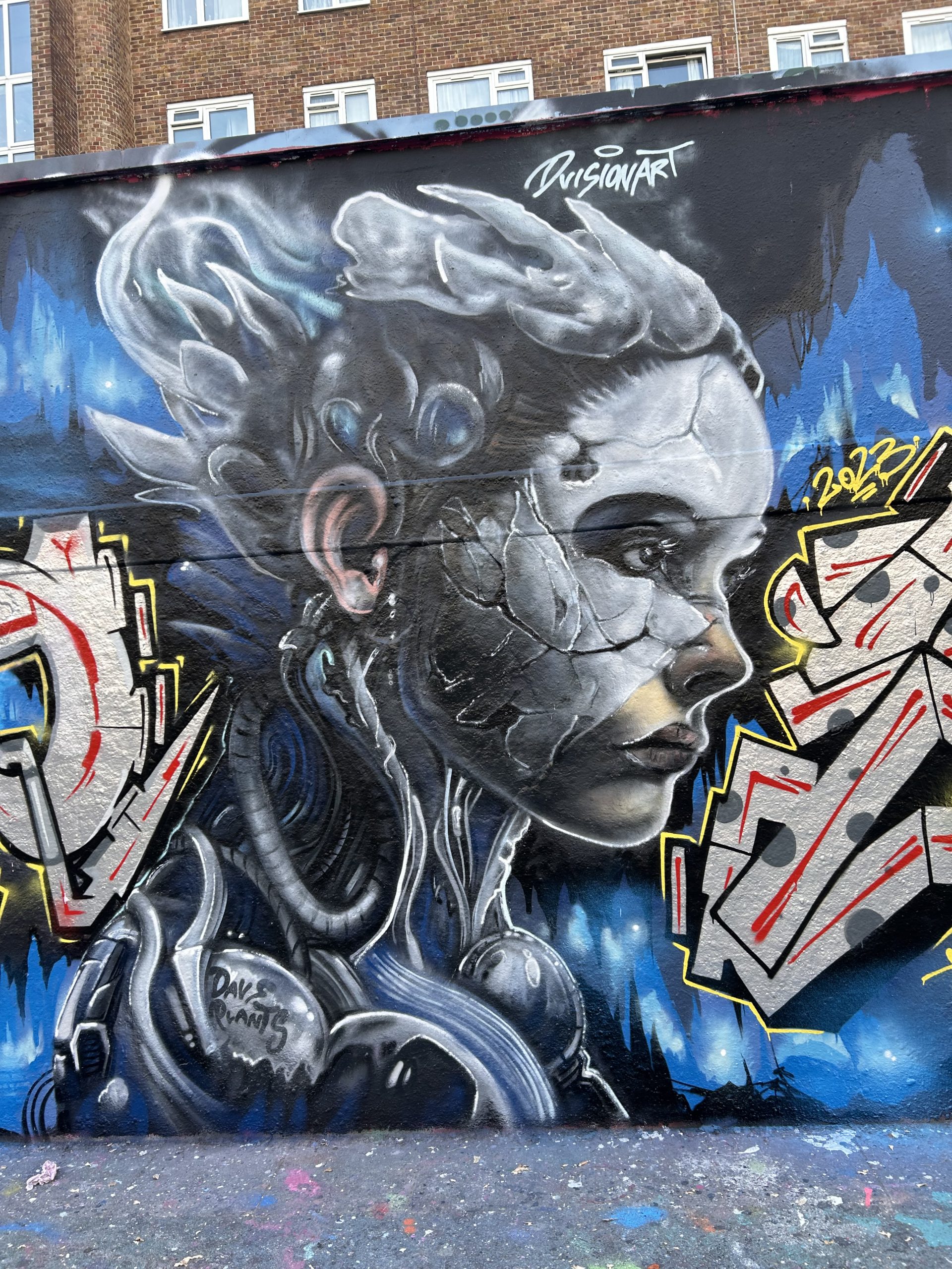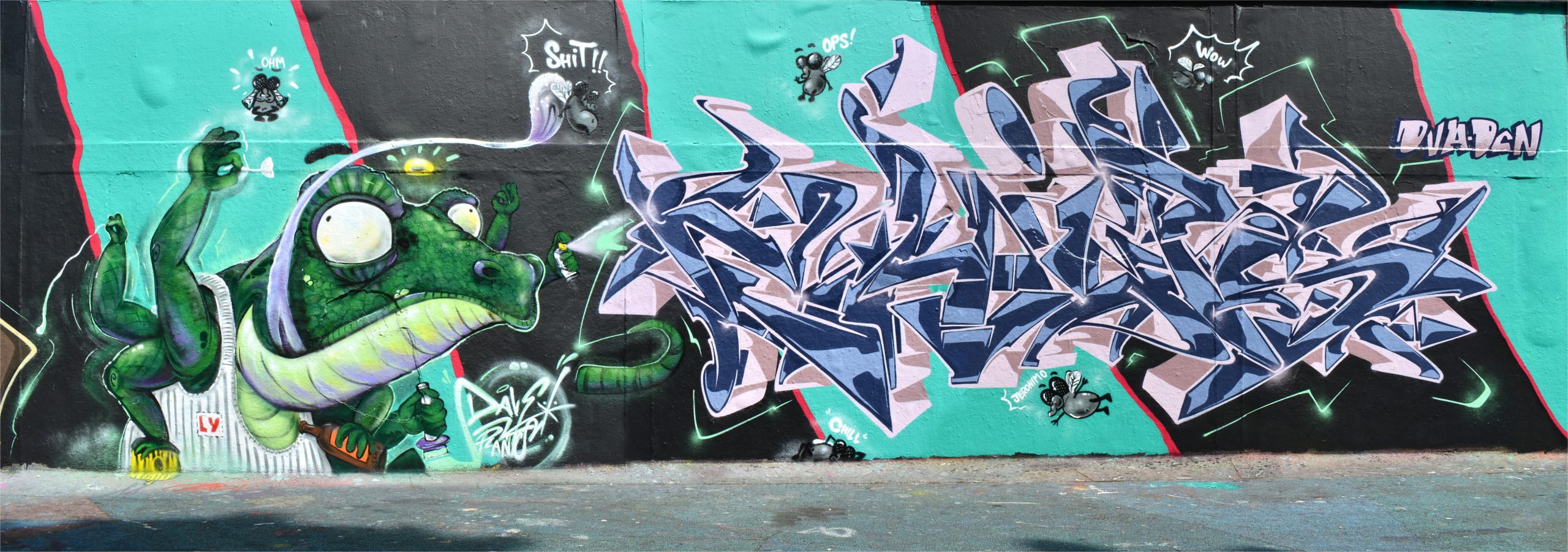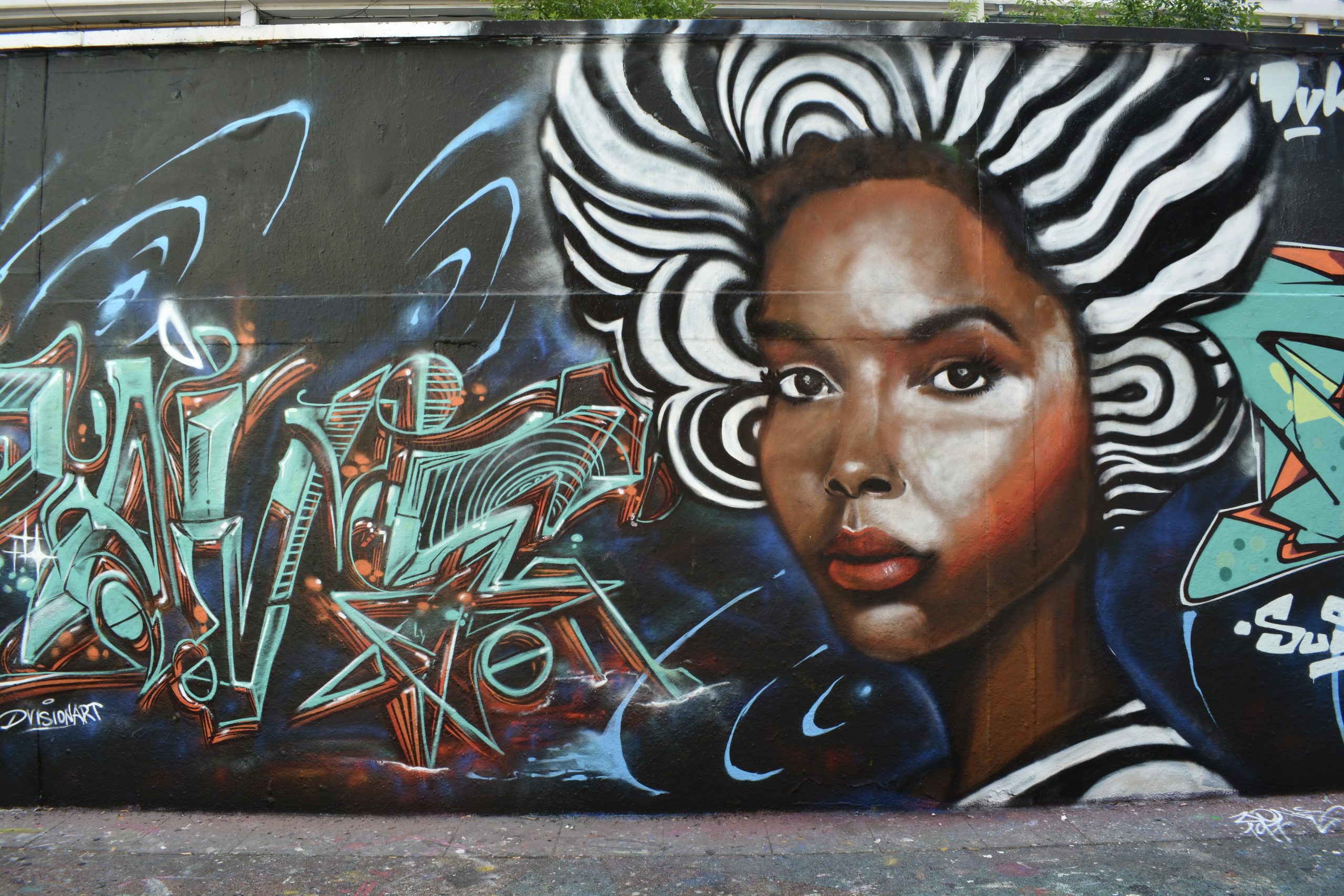 La nostra missione è soddisfare i nostri clienti creando, con loro, una sintonia. Qwerky è uno dei nostri partner più vecchi e Faisal, il proprietario, ripone in noi tanta fiducia da mantenere una relazione lavorativa costante con progetti sempre freschi e nuovi. Era proprio in cerca di qualche nuova ispirazione a Forrest Gate e noi abbiamo creato l'ambiente cominciando con un'incredibile giraffa che beve un caffé all'aperto e poi, step by step, riempiendo l'area con ulteriori artwork ( una mano che afferra da dietro un cancello nero, un polpo tuttofare, una porta astratta). La piovra ricorda un uomo indaffarato a riparare diverse situazioni con altrettanti diversi oggetti. La giraffa, invece, rappresenta il nostro sogno perduto nel cielo e il caffé che sta bevendo è un richiamo al business che insegue. La mano è stata un'opportunità unica e libera di usare lo spazio nel cortile al fine di attirare persone e rendere l'area un po' più apprezzabile per i residenti. Nel frattempo, Faisal ha aperto un altro Qwerky, questa volta a Shedwell, chiedendoci di installare una luce al neon che insieme a diversi effetti spray avrebbe dovuto abbellire il loro logo e ci ha invece lasciato carta bianca a Walthamston dove, per il suo primo negozio, abbiamo creato artwork unici che sembrano staccarsi dalla parete e prendere vita e, con il ragazza afro, abbiamo rappresentato la città in cui viviamo, Londra, riflessa nei suoi occhiali gialli.