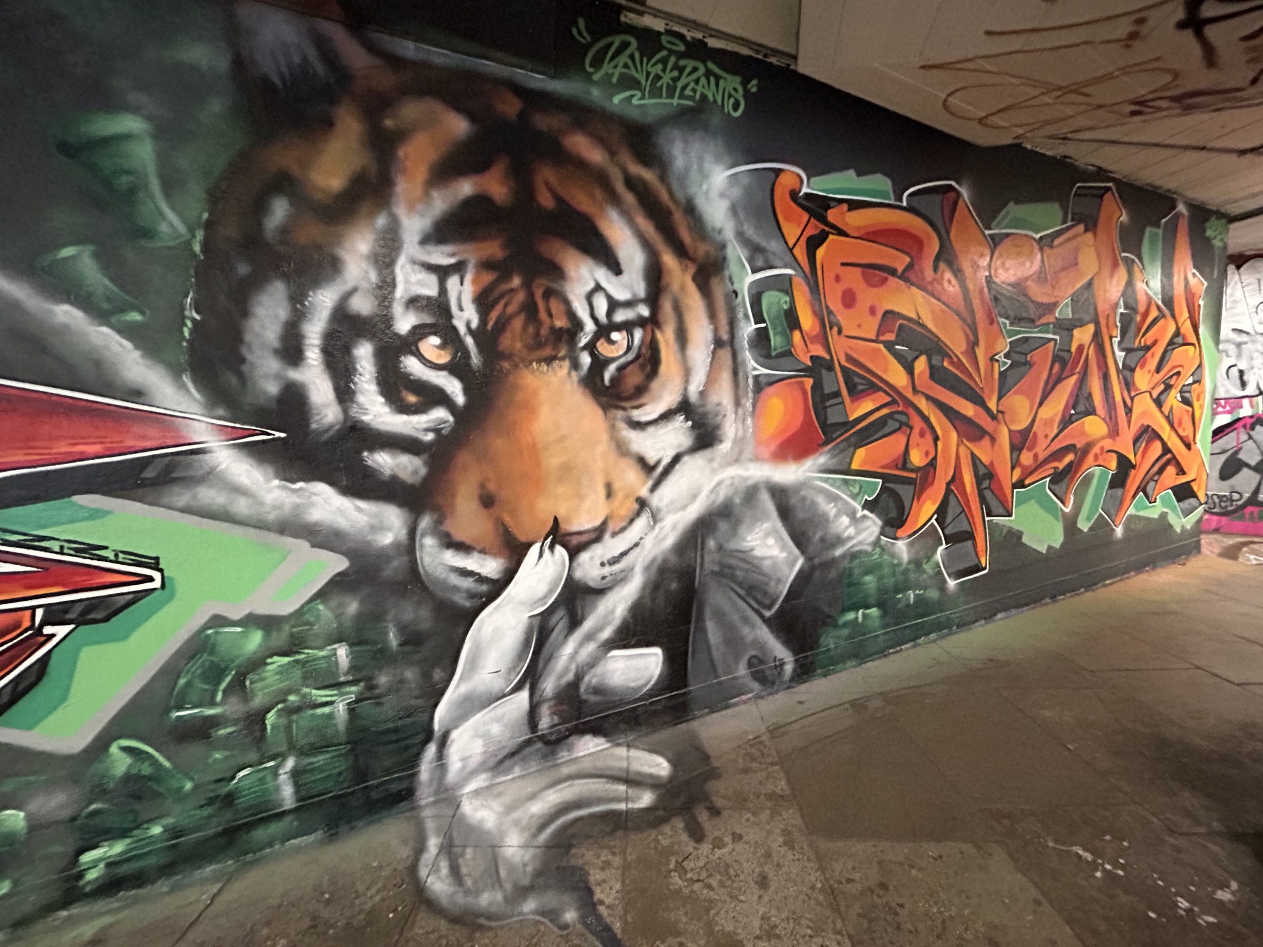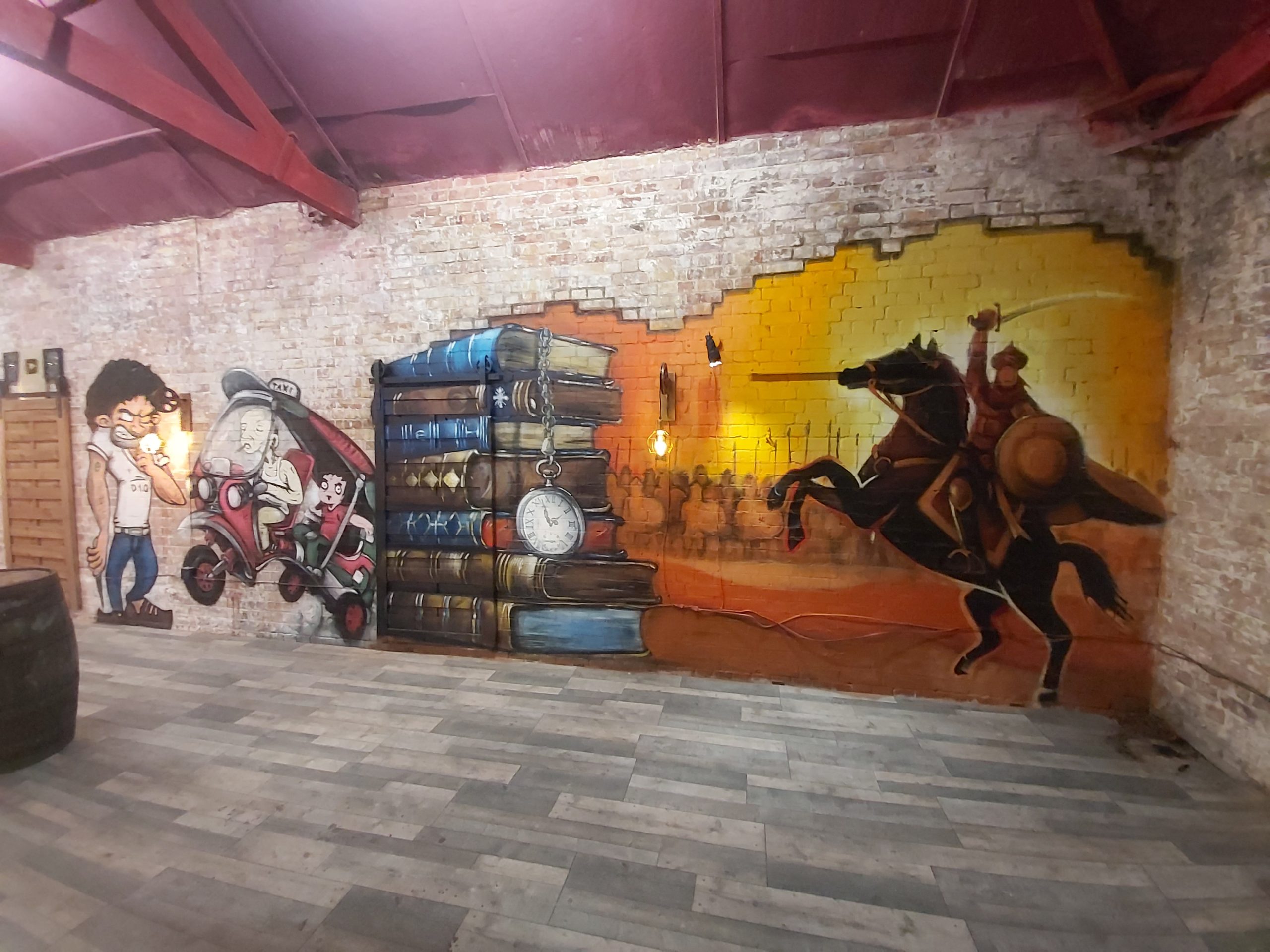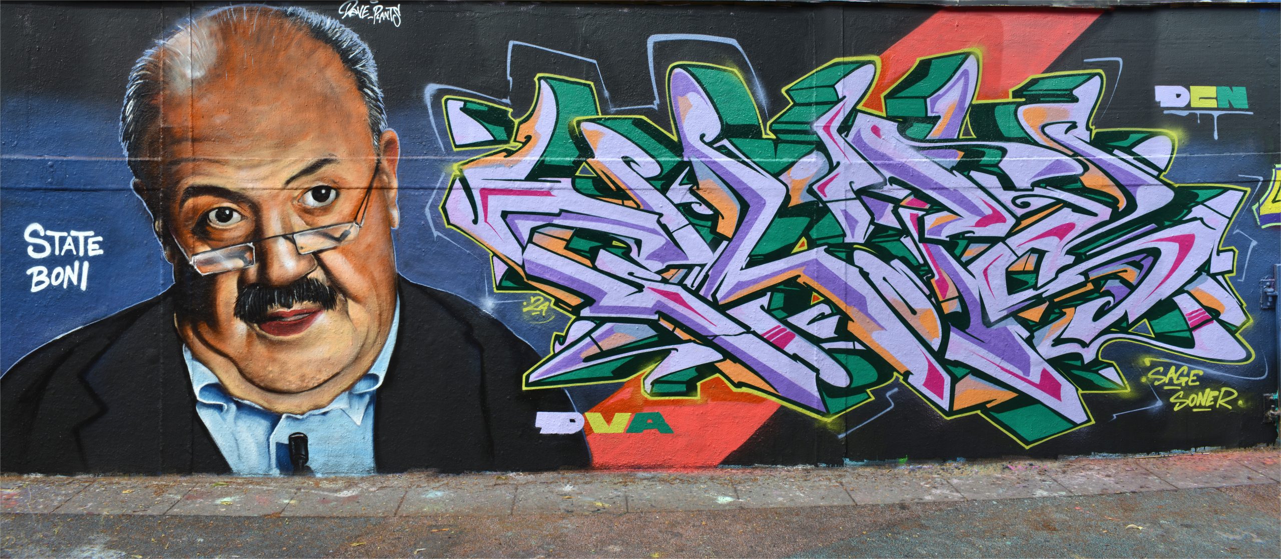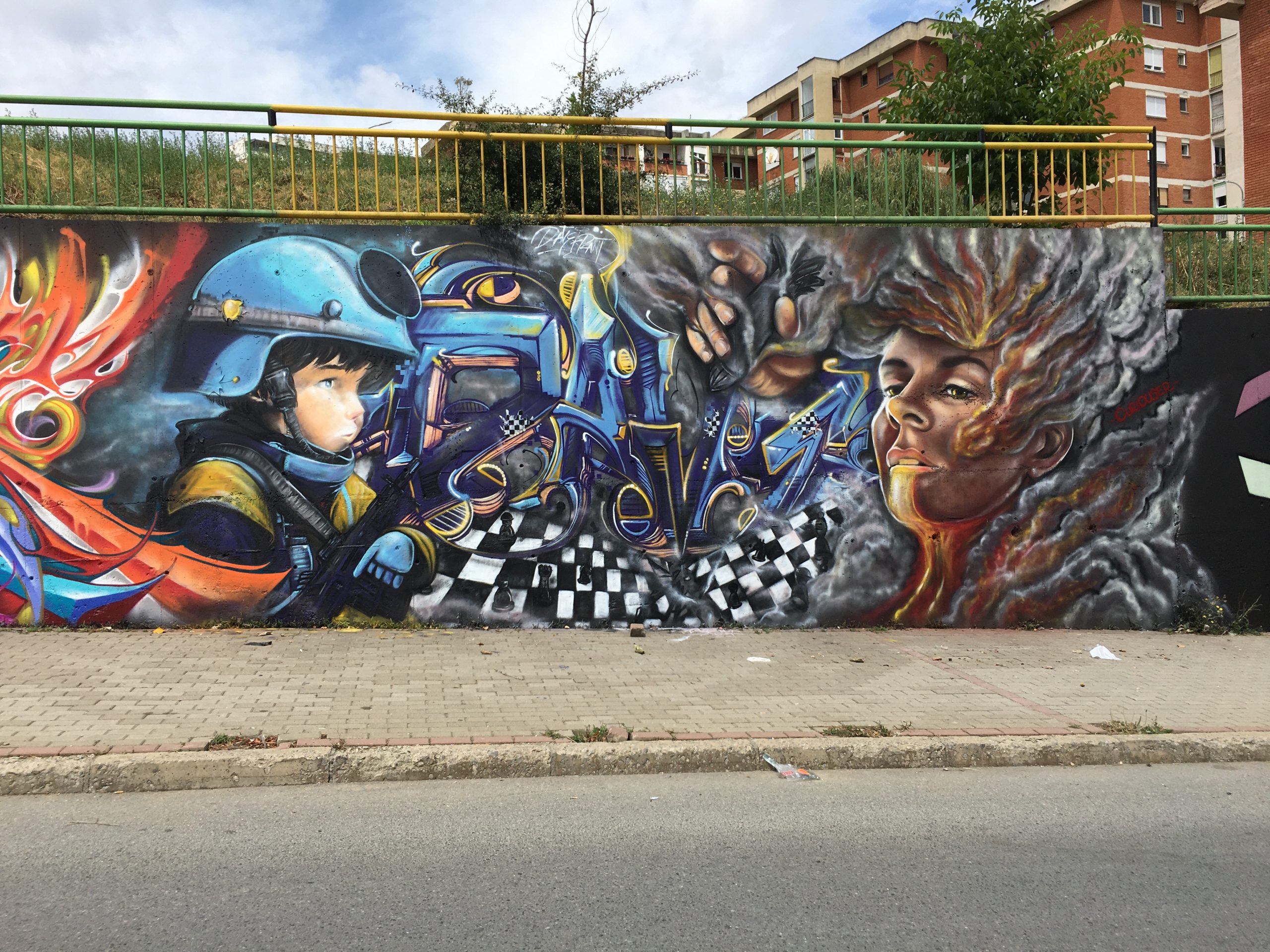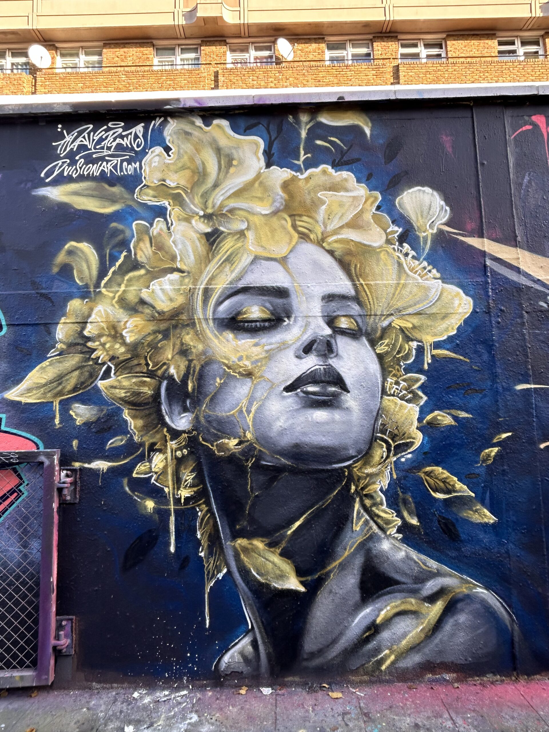 La nostra missione è soddisfare i nostri clienti creando, con loro, una sintonia. Qwerky è uno dei nostri partner più vecchi e Faisal, il proprietario, ripone in noi tanta fiducia da mantenere una relazione lavorativa costante con progetti sempre freschi e nuovi. Era proprio in cerca di qualche nuova ispirazione a Forrest Gate e noi abbiamo creato l'ambiente cominciando con un'incredibile giraffa che beve un caffé all'aperto e poi, step by step, riempiendo l'area con ulteriori artwork ( una mano che afferra da dietro un cancello nero, un polpo tuttofare, una porta astratta). La piovra ricorda un uomo indaffarato a riparare diverse situazioni con altrettanti diversi oggetti. La giraffa, invece, rappresenta il nostro sogno perduto nel cielo e il caffé che sta bevendo è un richiamo al business che insegue. La mano è stata un'opportunità unica e libera di usare lo spazio nel cortile al fine di attirare persone e rendere l'area un po' più apprezzabile per i residenti. Nel frattempo, Faisal ha aperto un altro Qwerky, questa volta a Shedwell, chiedendoci di installare una luce al neon che insieme a diversi effetti spray avrebbe dovuto abbellire il loro logo e ci ha invece lasciato carta bianca a Walthamston dove, per il suo primo negozio, abbiamo creato artwork unici che sembrano staccarsi dalla parete e prendere vita e, con il ragazza afro, abbiamo rappresentato la città in cui viviamo, Londra, riflessa nei suoi occhiali gialli.