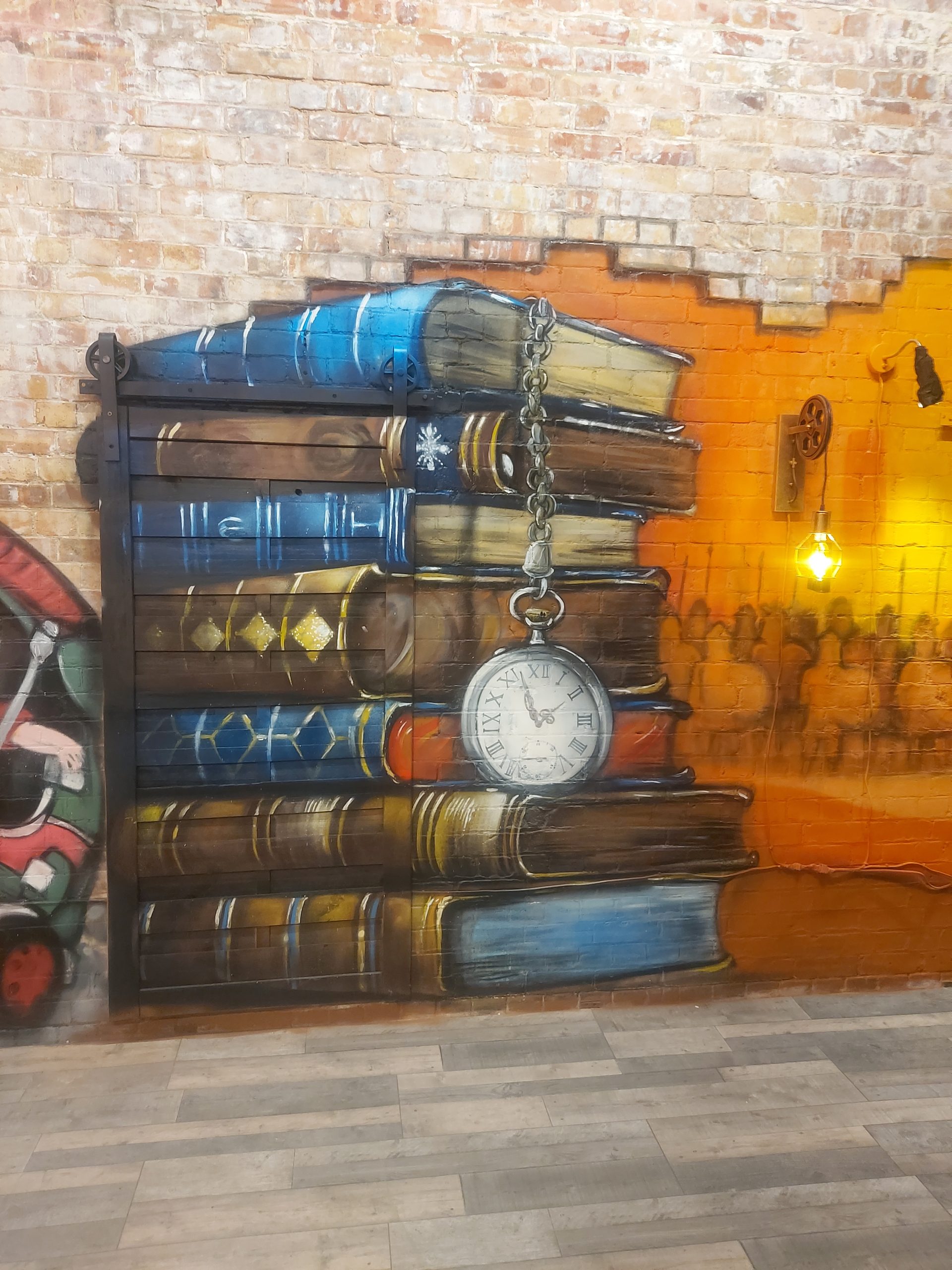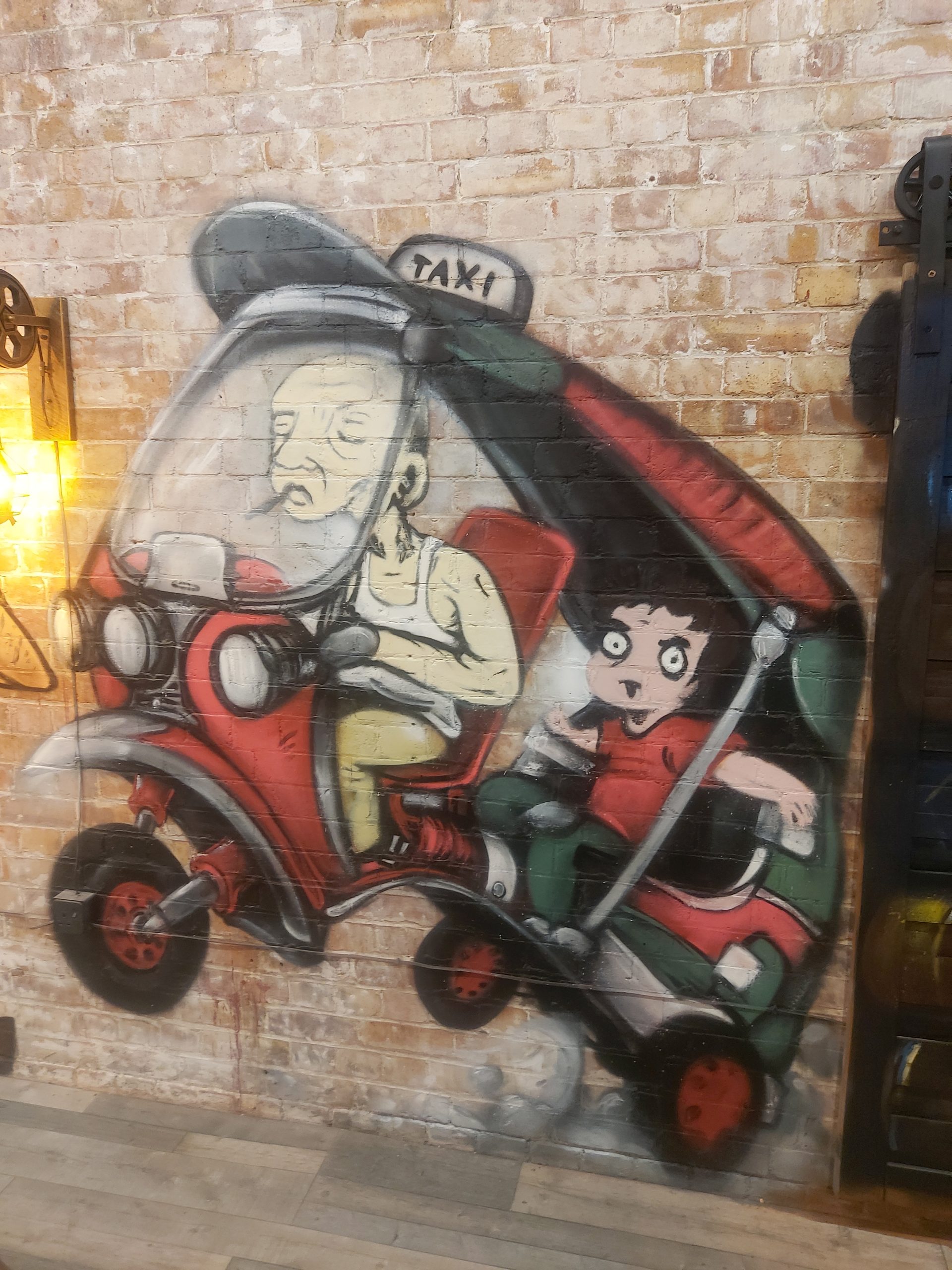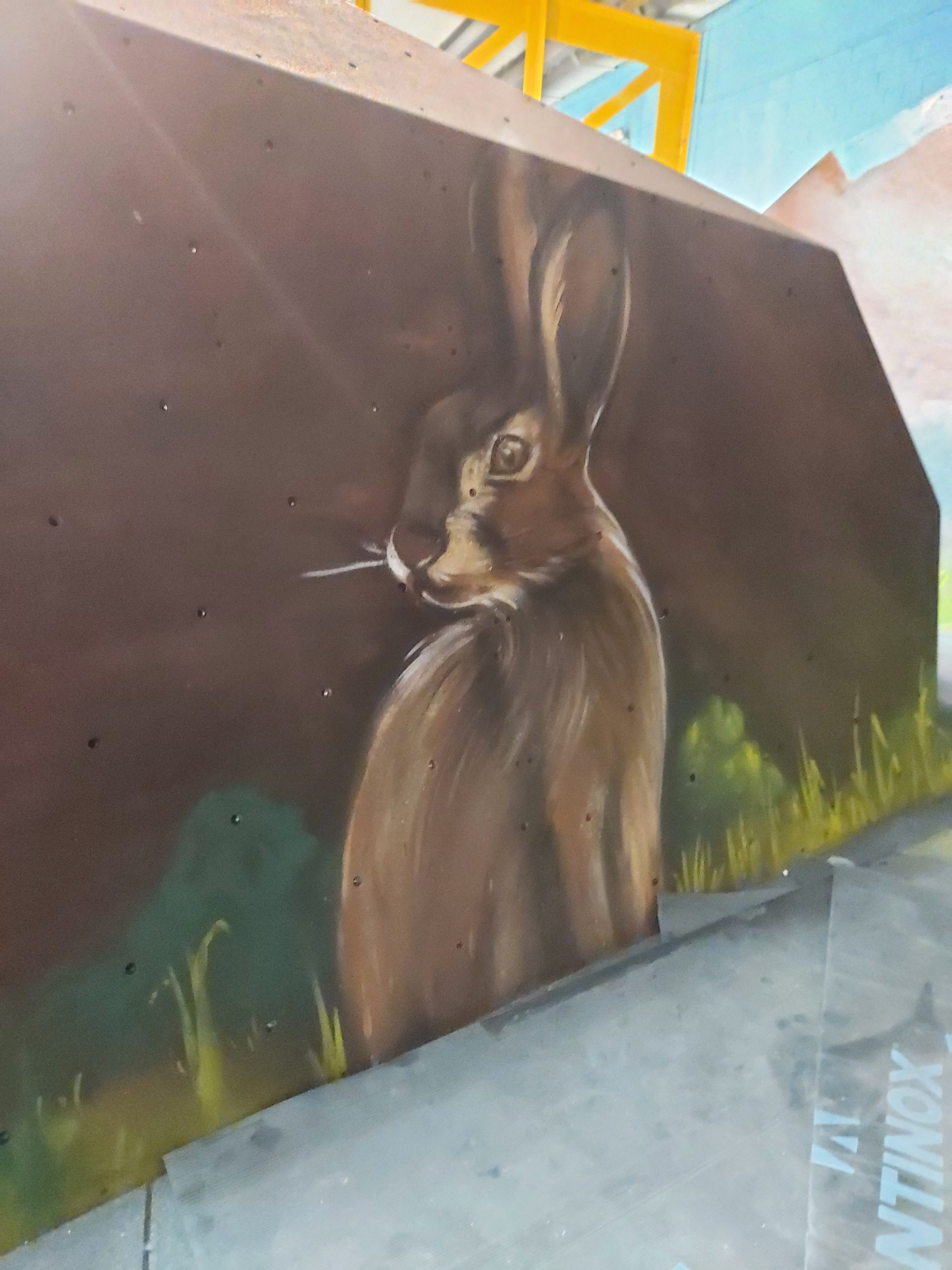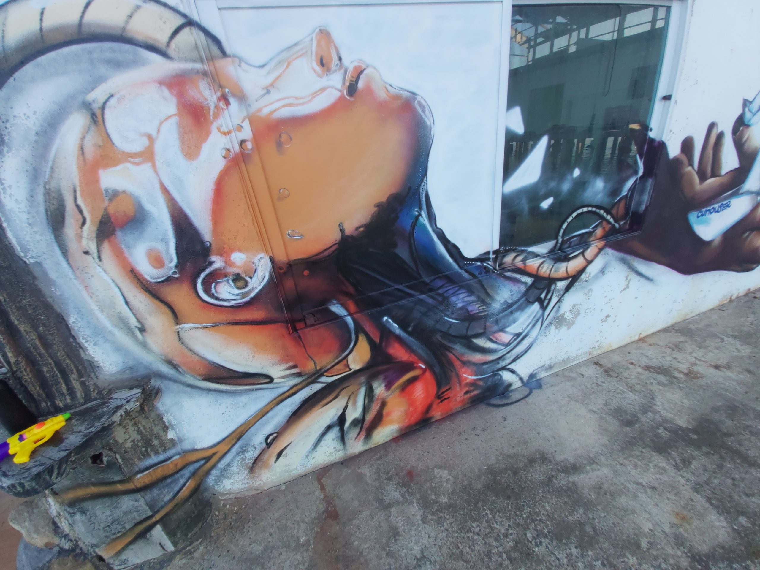 La nostra missione è soddisfare i nostri clienti creando, con loro, una sintonia. Qwerky è uno dei nostri partner più vecchi e Faisal, il proprietario, ripone in noi tanta fiducia da mantenere una relazione lavorativa costante con progetti sempre freschi e nuovi. Era proprio in cerca di qualche nuova ispirazione a Forrest Gate e noi abbiamo creato l'ambiente cominciando con un'incredibile giraffa che beve un caffé all'aperto e poi, step by step, riempiendo l'area con ulteriori artwork ( una mano che afferra da dietro un cancello nero, un polpo tuttofare, una porta astratta). La piovra ricorda un uomo indaffarato a riparare diverse situazioni con altrettanti diversi oggetti. La giraffa, invece, rappresenta il nostro sogno perduto nel cielo e il caffé che sta bevendo è un richiamo al business che insegue. La mano è stata un'opportunità unica e libera di usare lo spazio nel cortile al fine di attirare persone e rendere l'area un po' più apprezzabile per i residenti. Nel frattempo, Faisal ha aperto un altro Qwerky, questa volta a Shedwell, chiedendoci di installare una luce al neon che insieme a diversi effetti spray avrebbe dovuto abbellire il loro logo e ci ha invece lasciato carta bianca a Walthamston dove, per il suo primo negozio, abbiamo creato artwork unici che sembrano staccarsi dalla parete e prendere vita e, con il ragazza afro, abbiamo rappresentato la città in cui viviamo, Londra, riflessa nei suoi occhiali gialli.