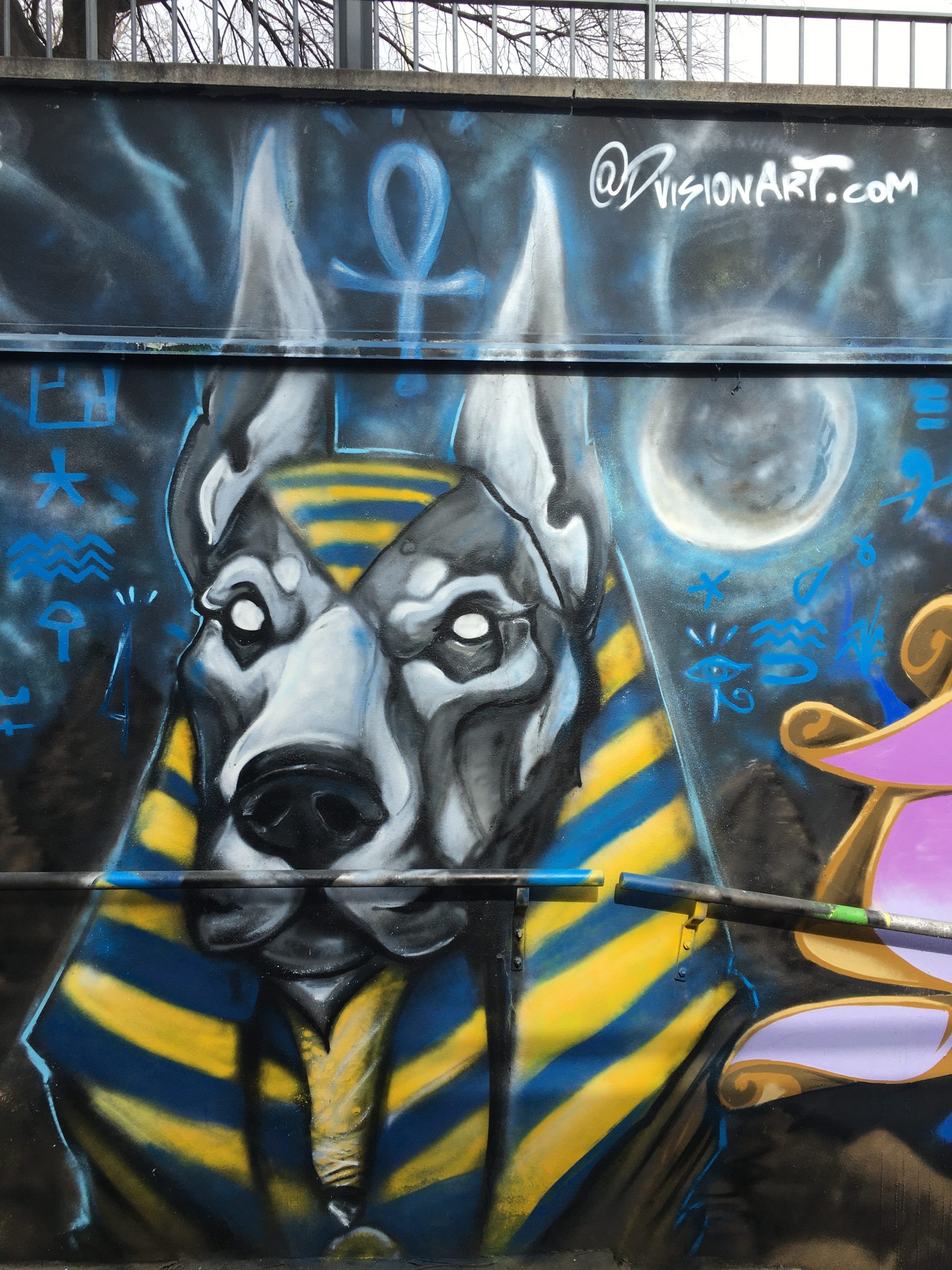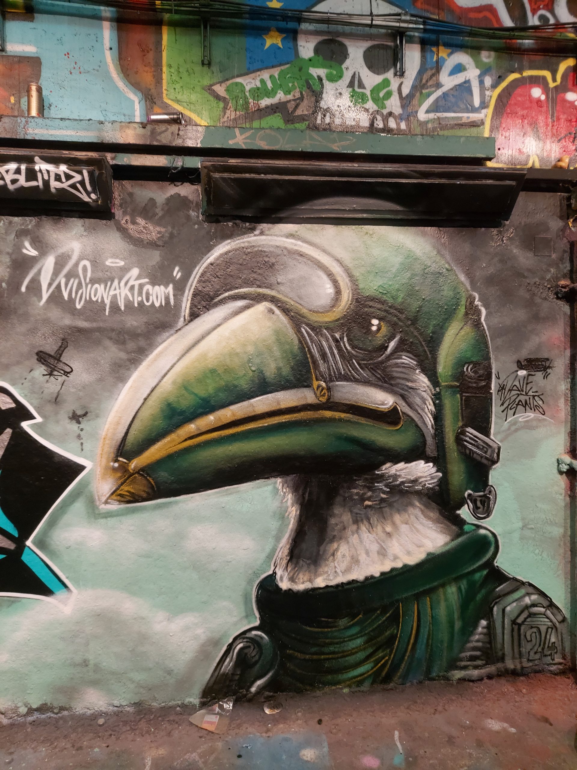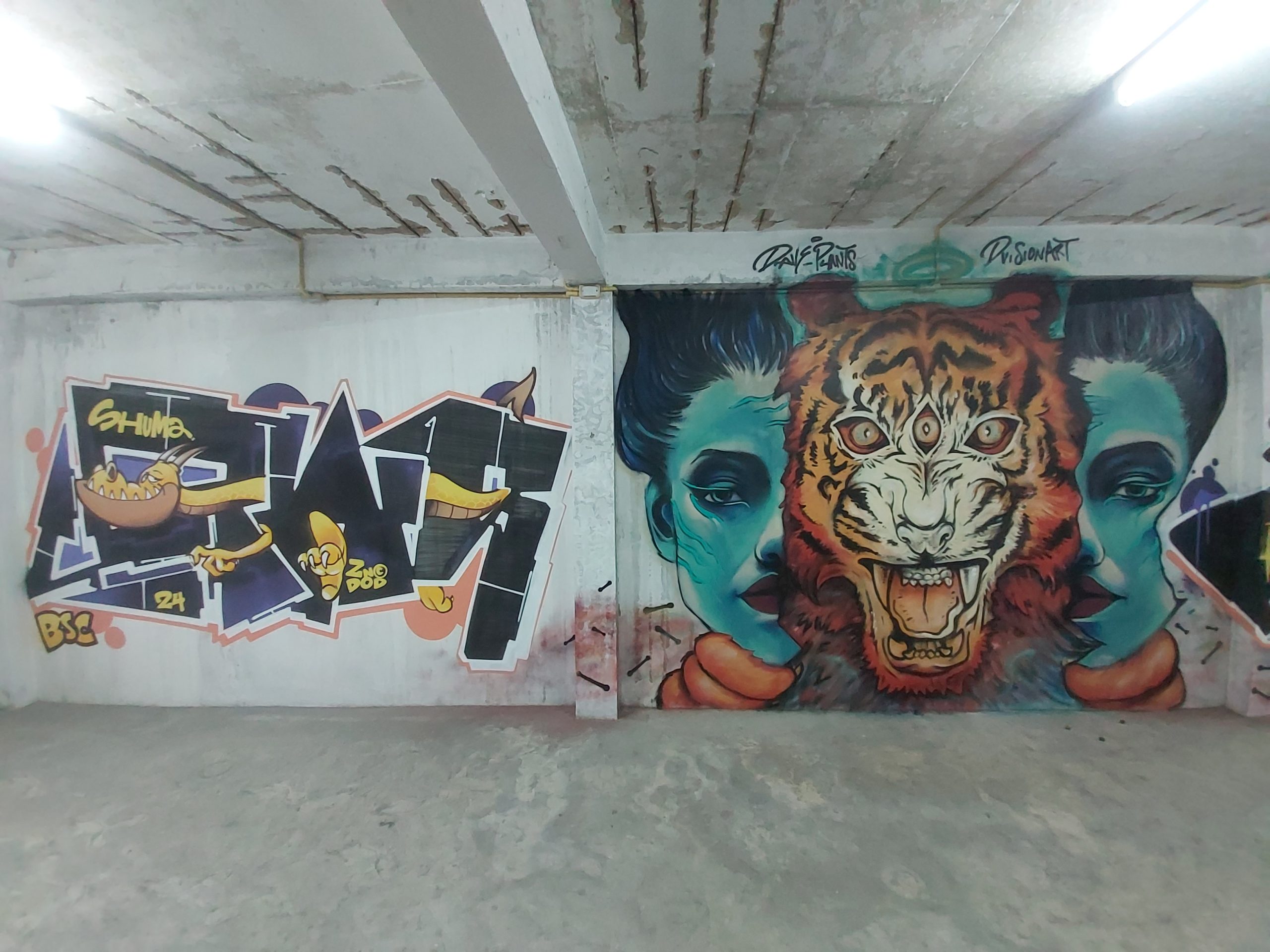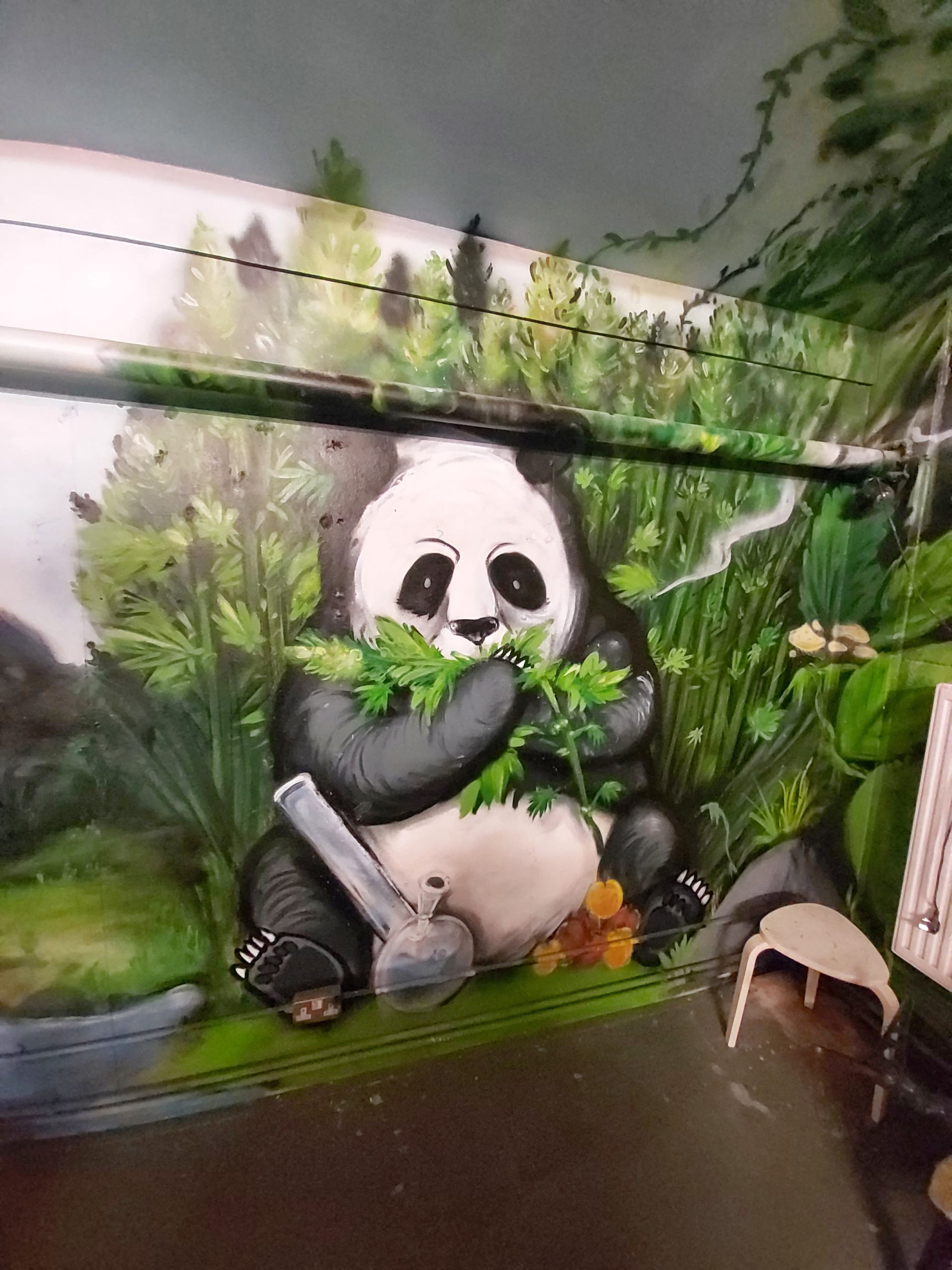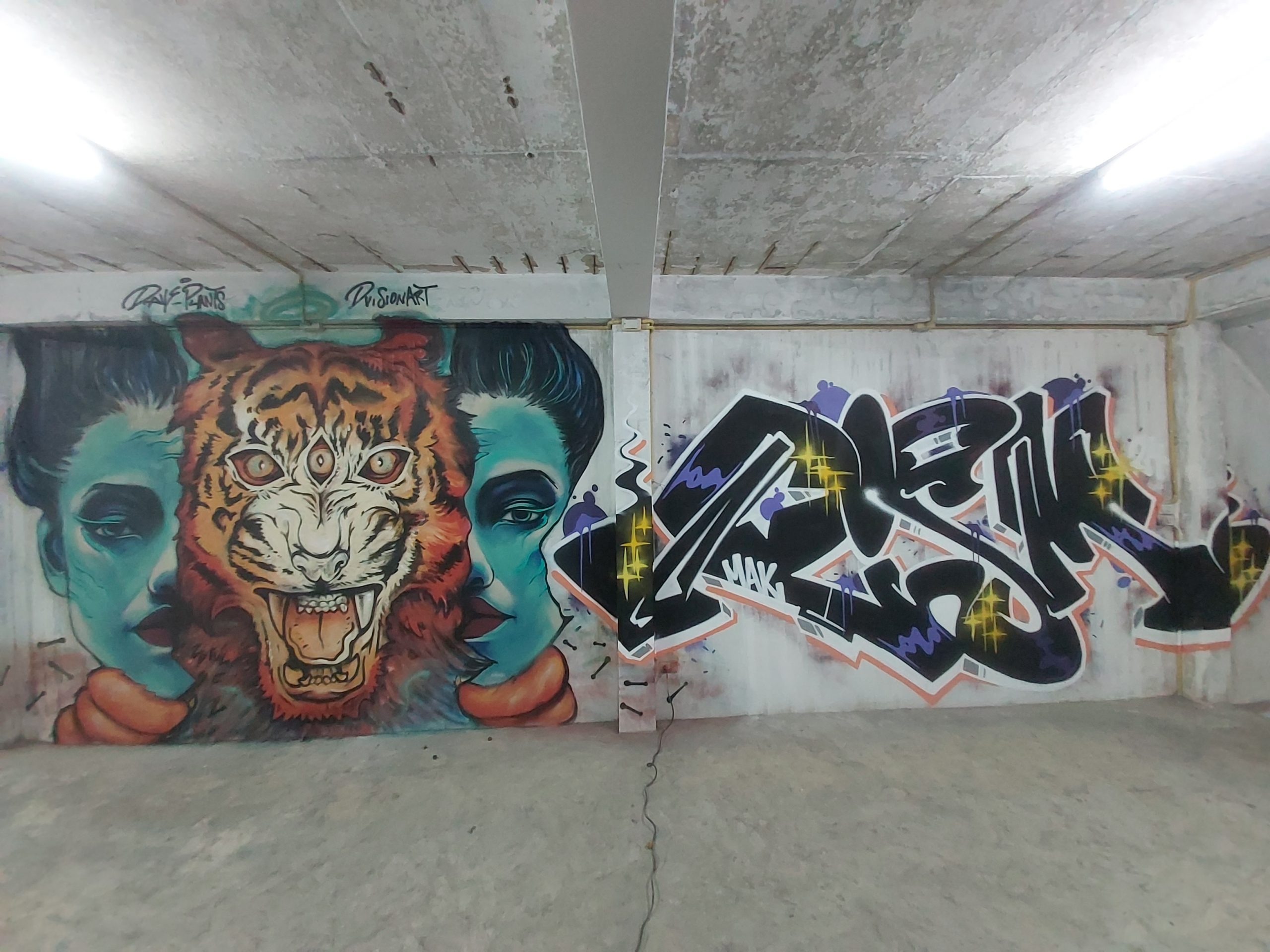 La nostra missione è soddisfare i nostri clienti creando, con loro, una sintonia. Qwerky è uno dei nostri partner più vecchi e Faisal, il proprietario, ripone in noi tanta fiducia da mantenere una relazione lavorativa costante con progetti sempre freschi e nuovi. Era proprio in cerca di qualche nuova ispirazione a Forrest Gate e noi abbiamo creato l'ambiente cominciando con un'incredibile giraffa che beve un caffé all'aperto e poi, step by step, riempiendo l'area con ulteriori artwork ( una mano che afferra da dietro un cancello nero, un polpo tuttofare, una porta astratta). La piovra ricorda un uomo indaffarato a riparare diverse situazioni con altrettanti diversi oggetti. La giraffa, invece, rappresenta il nostro sogno perduto nel cielo e il caffé che sta bevendo è un richiamo al business che insegue. La mano è stata un'opportunità unica e libera di usare lo spazio nel cortile al fine di attirare persone e rendere l'area un po' più apprezzabile per i residenti. Nel frattempo, Faisal ha aperto un altro Qwerky, questa volta a Shedwell, chiedendoci di installare una luce al neon che insieme a diversi effetti spray avrebbe dovuto abbellire il loro logo e ci ha invece lasciato carta bianca a Walthamston dove, per il suo primo negozio, abbiamo creato artwork unici che sembrano staccarsi dalla parete e prendere vita e, con il ragazza afro, abbiamo rappresentato la città in cui viviamo, Londra, riflessa nei suoi occhiali gialli.