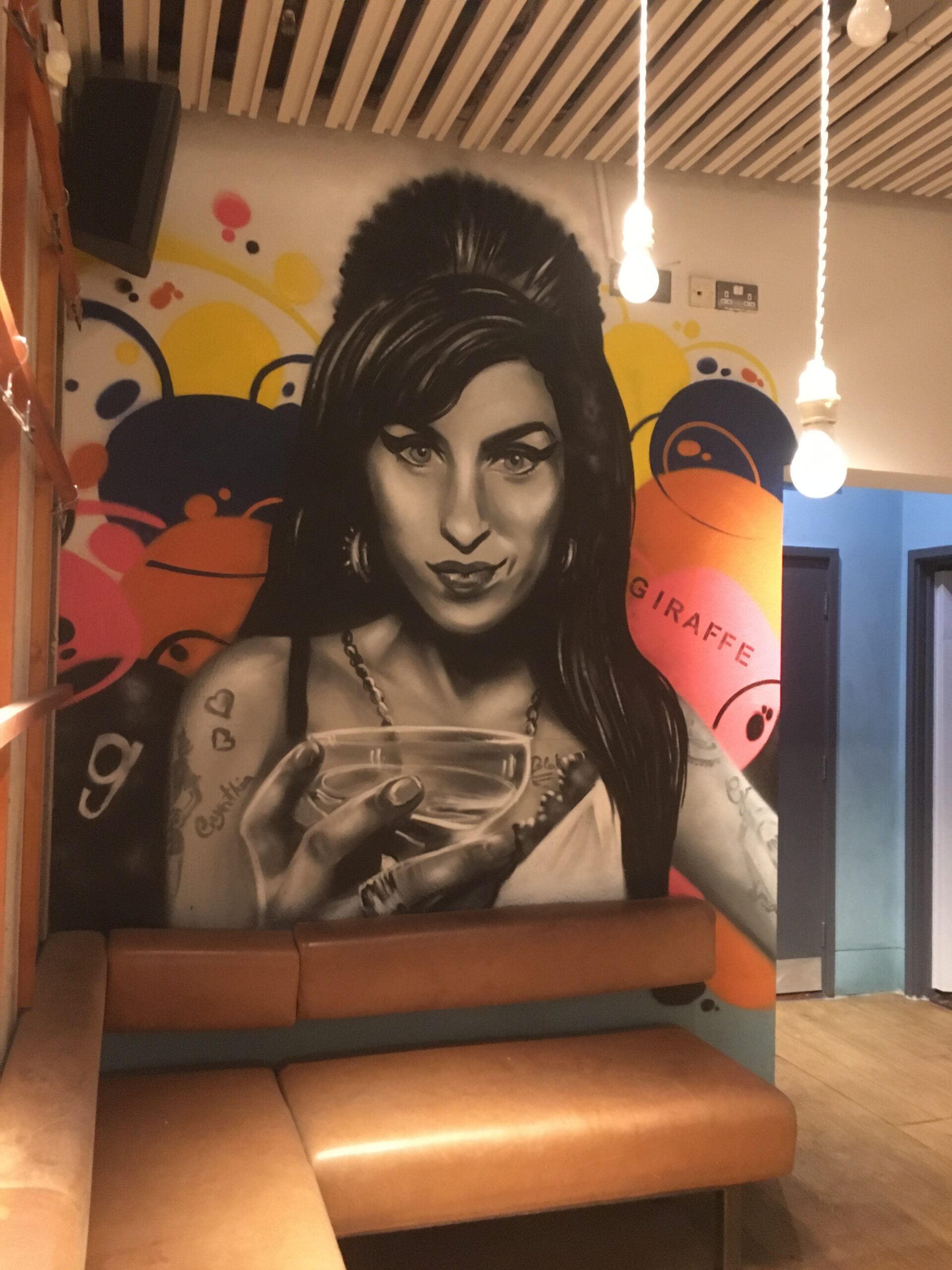 Keyana il loro store manager ci ha chiesto di dipingere la giraffa della Southbank a Londra l'anno scorso con diversi cantanti famosi , li riconosci?